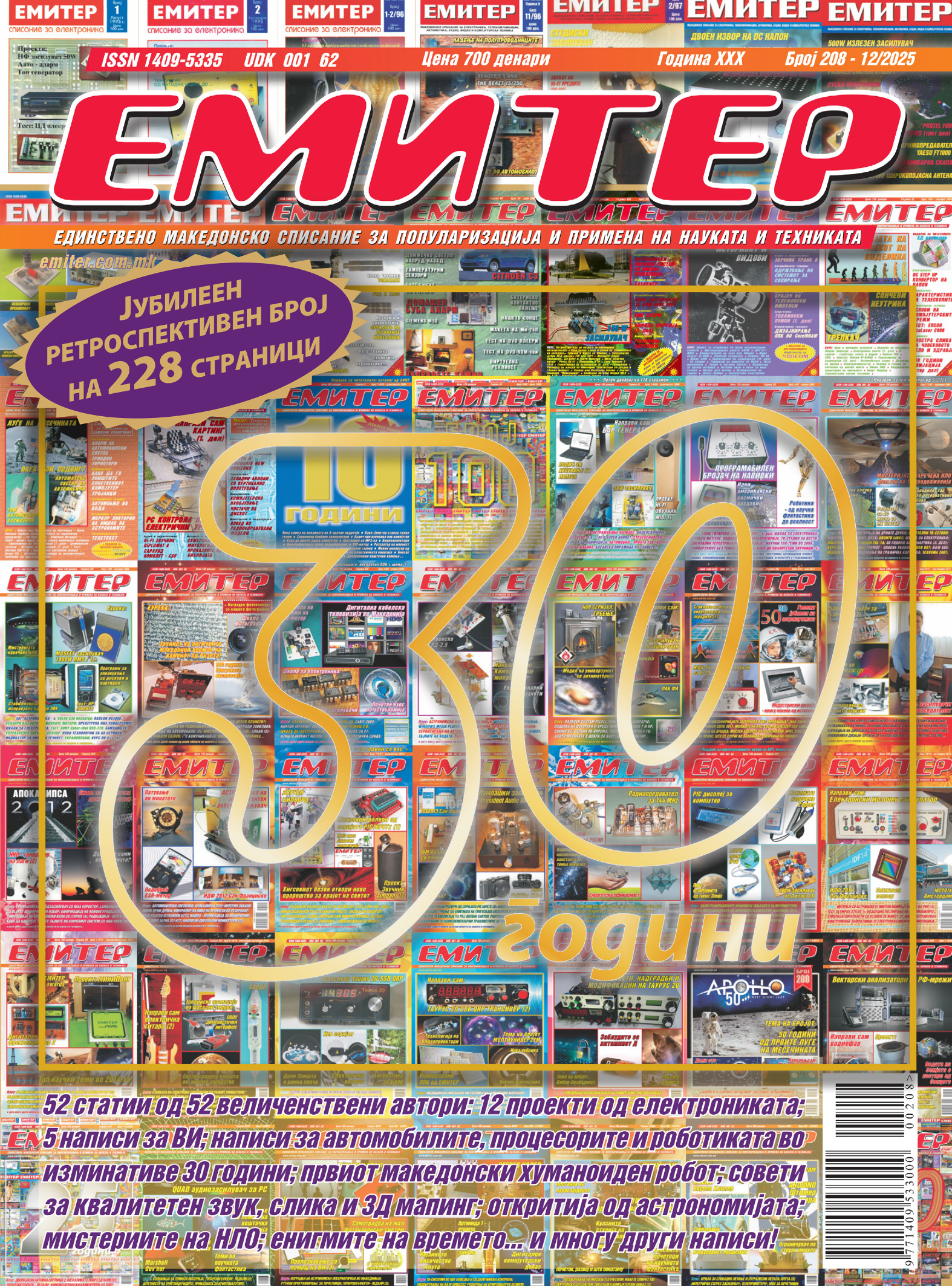 30 години – звучи грандиозно, големо и неверојатно... А ете – тука сме, стасавме и до оваа “округла” бројка. Многумина не веруваа дека ЕМИТЕР ќе опстане толку долго. Да бидеме искрени, не верувавме ни ние, меѓутоа се надевавме и работевме.  Низ овие три полни декади испишавме преку 16 000 страници исполнети со околу 5000 статии со проекти, практични совети, информации за нови и стари технологии, достигнувања – содржини од сите области на науката и техниката. Во овие 5000 статии има околу 900 електронски конструкции за самоградба, околу 200 статии со самоградби и практични совети од други области, околу 400 тестови на уреди, алати и опрема и околу 1200 стручни теоретски написи. Низ годините истражувавме и демаскиравме заблуди и измами, дискутиравме и дебатиравме за мистерии, митови и хипотези, тестиравме теории и уреди, информиравме и едуциравме, паѓавме, станувавме, растевме и созревавме, опстојувавме. На овој или оној начин, наспроти сите тешкотии (од финансиска и организациска природа) успеавме ЕМИТЕР да не биде едно од многуте македонски списанија со кус век.