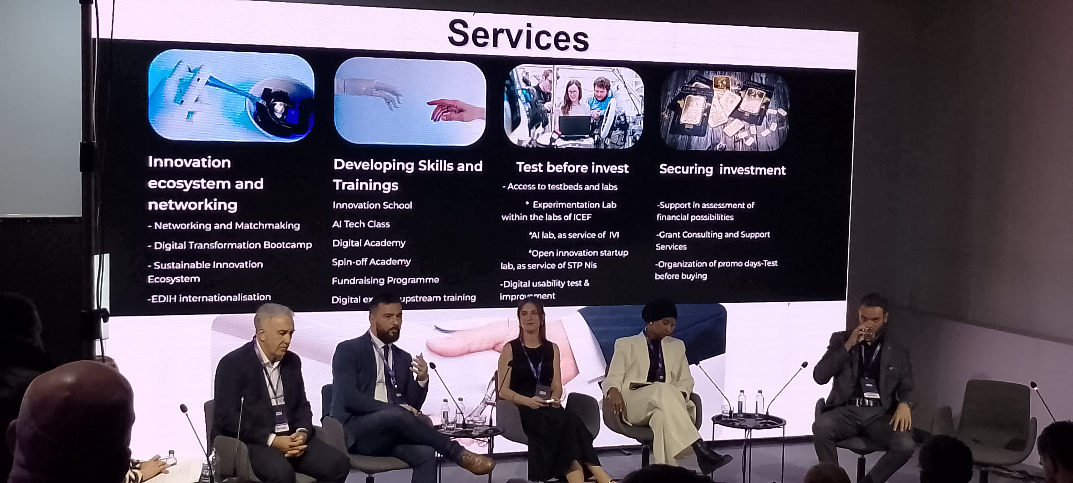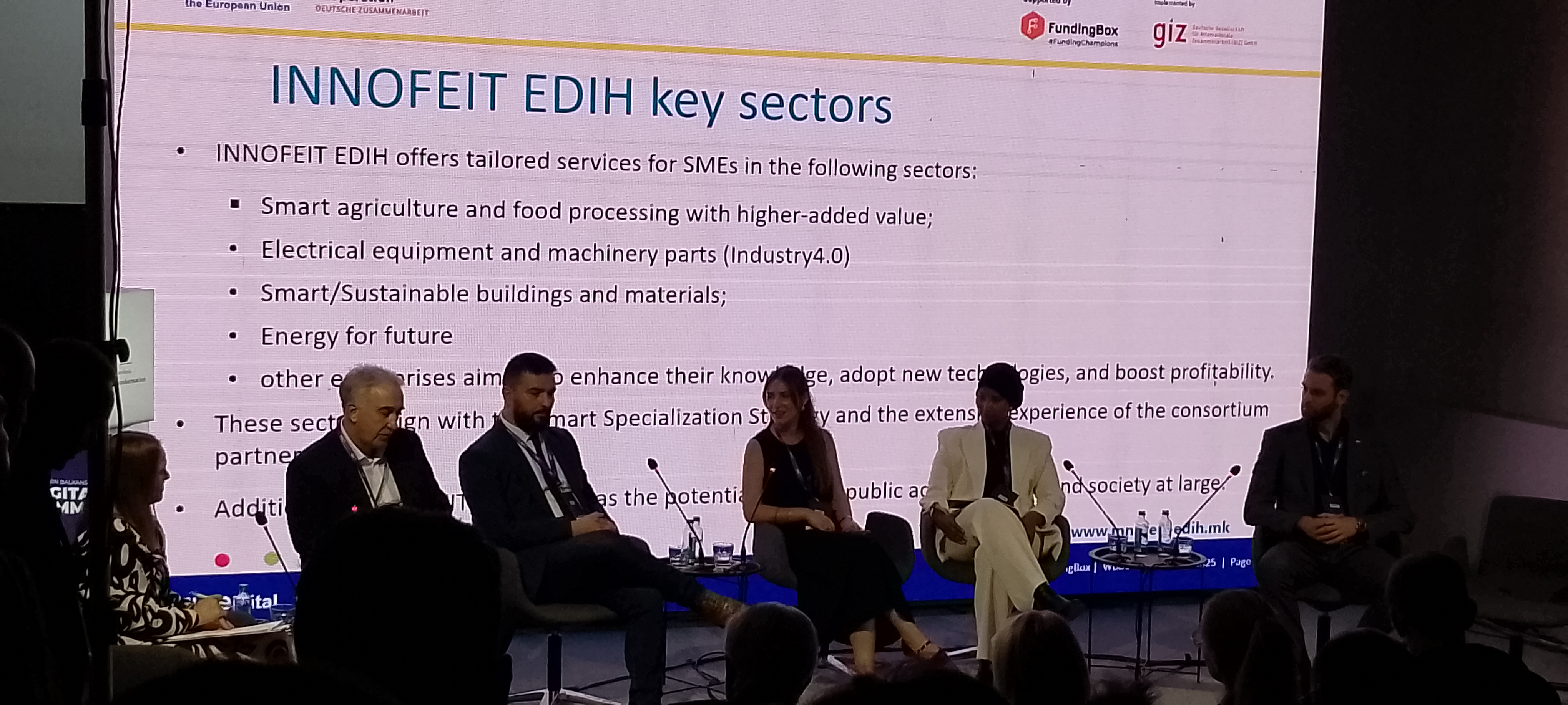По воведните обраќања на Гордана Клинчарова, државен секретар на Министерството за дигитална трансформација на Македонија, Јануш Чежински поранешен министер за дигитални работи на Полска и Валерија Јонан, советник на првиот вицепремиер за иновации, дигитални и глобални партнерства на Украина, денешниот ден започна со панел дискусија на која се разгледуваше улогата на EDIH во унапредувањето на дигиталната трансформација и иновациите на малите и средни претпријатија. Панелисти беа Димитар Ташковски директор на ИНОФЕИТ, Иван Павловиќ помошник директор во Технолошкиот парк во Ниш, Бесмир Красниќи од Паркот за иновации и обука во Призрен, Камар Аден Омар од ЕДИХ-ДО – Дортмунд и Ивлин Ѓата проектен менаџер од центарот за дигитални иновации во Тирана. Секој од нив даде мало претставување во кое акцент беше ставен н улогата на нивните организации во дигиталната трансформација на општеството, начините на кои таа се остварува, досега постигнатите резултати и насоките во кои треба да се работи понатаму.