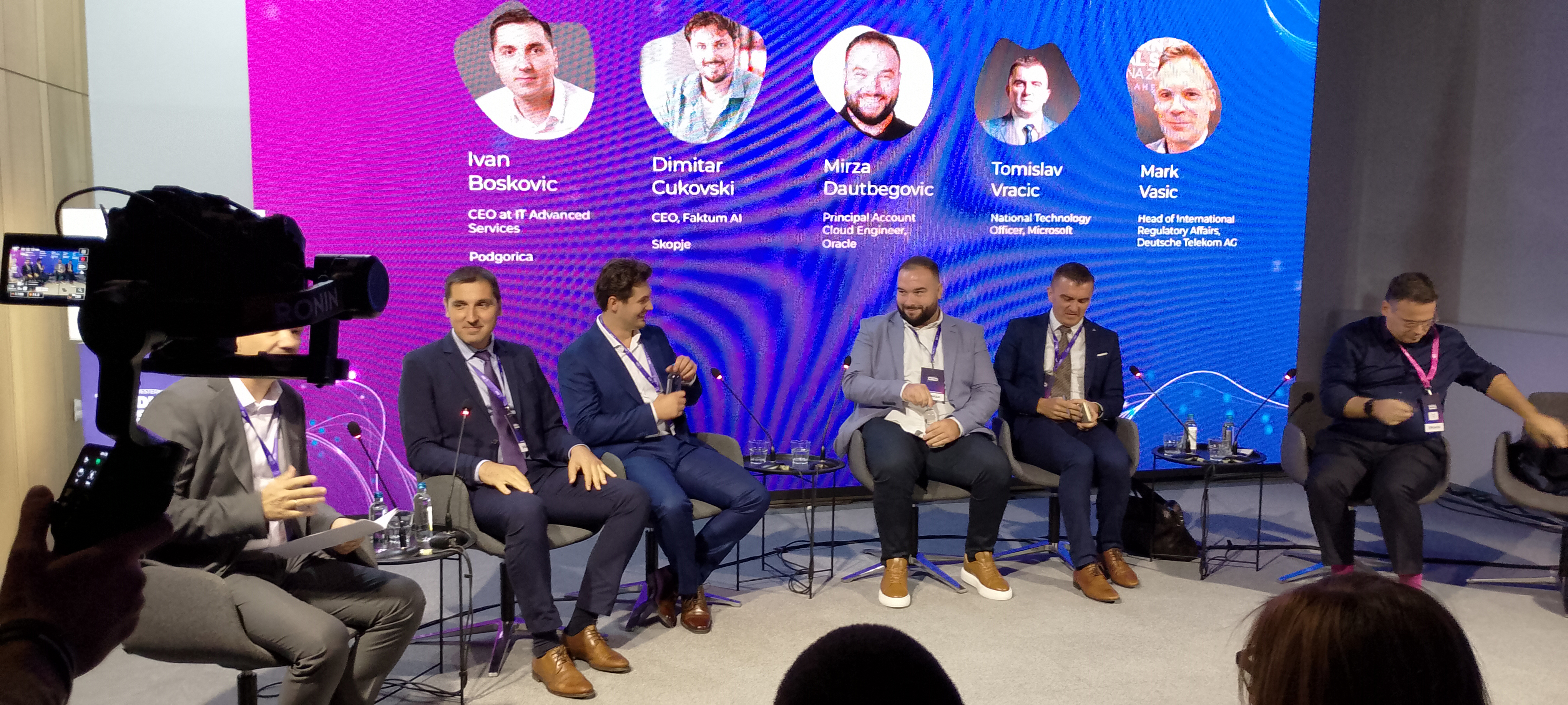 По ова ги претставници од водечките играчи од бизнис заедницата заедно со претставници од два регионални стартапи дискутираа за примената на вештачката интелигенција во секојденвието, како бизнис решение но и како помагало во секојдневието на обичниот човек. Дали вештачката интелигенција ќе го замени човекот? Интересна беше забелешката од претставникот на Фактум кој во еден момент кажа дека ВИ алатката менува двајца до тројца програмери. Претставниците од големите компании (Орикл, Мајкрософт, Дојче Телеком) ја повторија доброутврдената лекција дека ВИ е тука алатка за помош а не за замена на човекот, сем кај репетитивните и здодевни задолженија. Малку идилично и седативно размислување, но нејсе. Дискусијата беше секако интересна за следење.