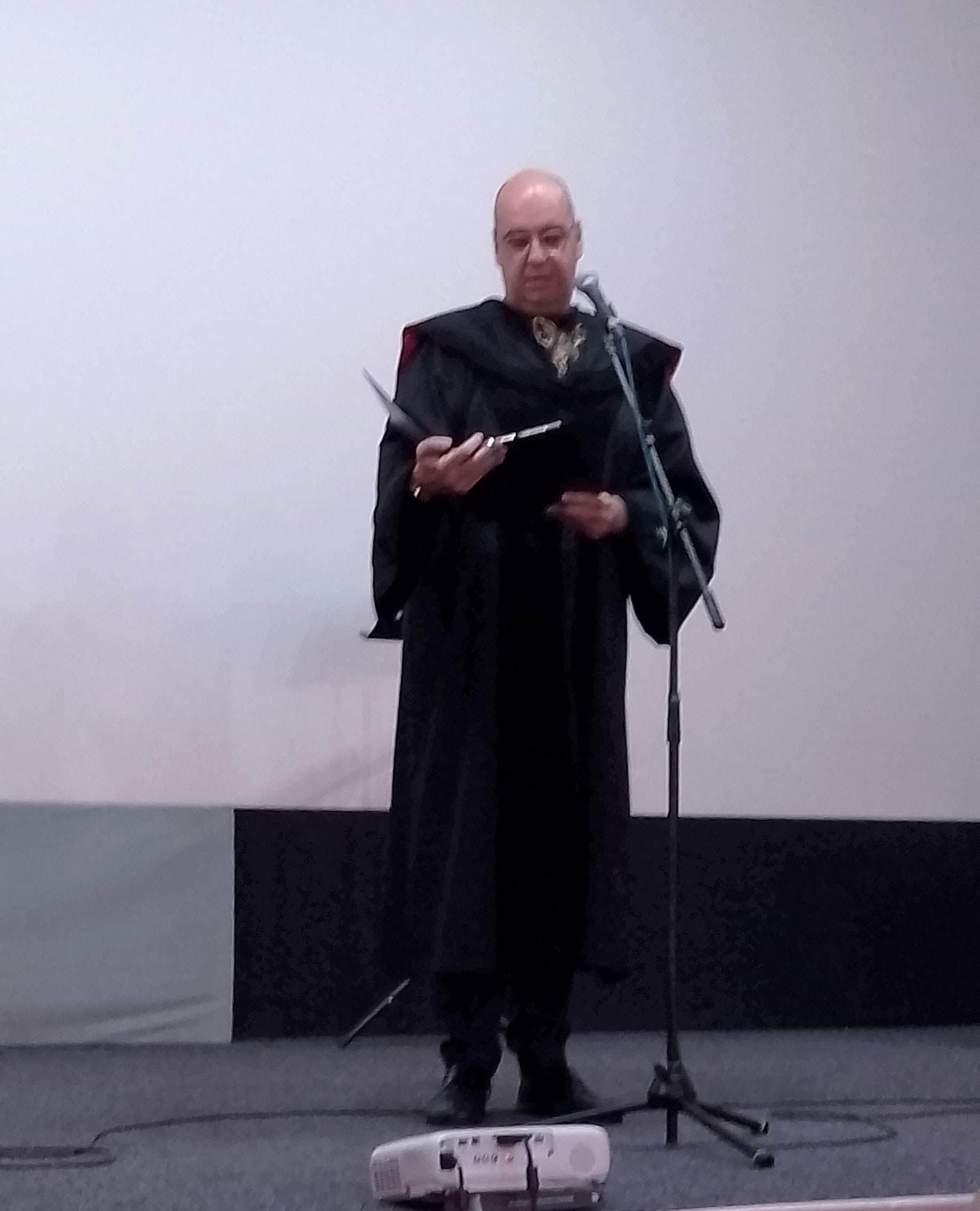 Проф. д-р Роман Кралик најнапред се заблагодари на укажаната чест, набројувајќи најмалку четири причини зошто неговото прогласување за почесен доктор на науки токму во Македонија го чувствува како особена привилегија – ”најнапред бидејќи ќе говорам за концептите на Кјеркегор, второ бидејќи мој претходник беше брилијантниот чесшки режисер Јиржи Менсл, чиешто дело честопати го комбинира холистичкиот поглед на светот со сарказам и провокативна кинематографска естетика, трето вашата земја Македонија со нејзиното вековно духовно наследство за целиот свет и четврто, луѓето во Македонија, моите пријатели, кои со енергија која не спласнува се во потрага по реализација на нивните сништа, ме асоцираат на една работа – страста на Кјеркегор”, ќе спомне тој, по што ќе се осврне на аудиовизуелните уметности и значението на дигитализацијата на уметничката и философската меморија во светот.