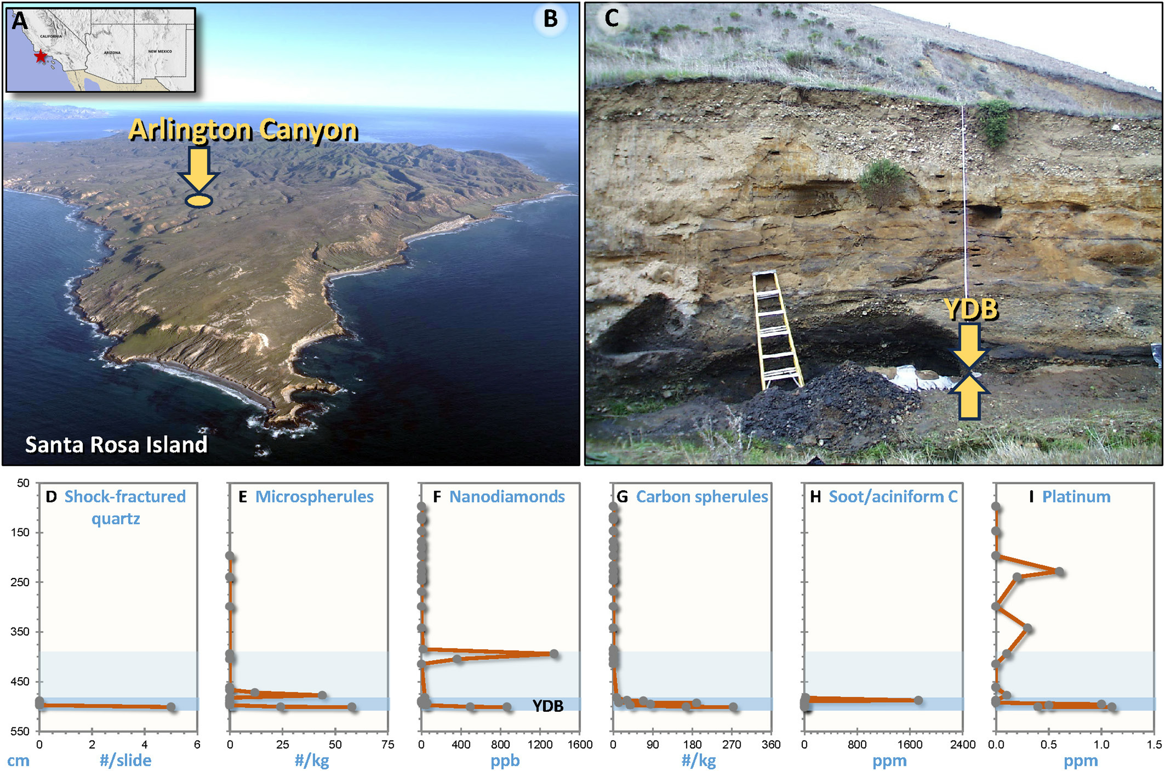 Геолозите откриле кварцни зрна со сложени фрактури (пукнатини), од кои некои се исполнети со стопен силициум диоксид, карактеристики што укажуваат на покачени температури и притисоци. Користејќи техники од типот на електронска микроскопија (TEM, SEM), катодолуминисценција и EBSD за анализа на кварцните деформации, научниците откриле деформации што ги надминуваат оние што вообичаено му се припишуваат на вулканизмот или на некоја друга обична геолошка активност. Конечно, компјутерското моделирање покажува дека атмосферска експлозија на фрагментирана комета што би се случила на ниска надморска височина можела да генерира услови (притисок, топлина) што се потребни за создавање на овој вид шок во кварцните зрна.
