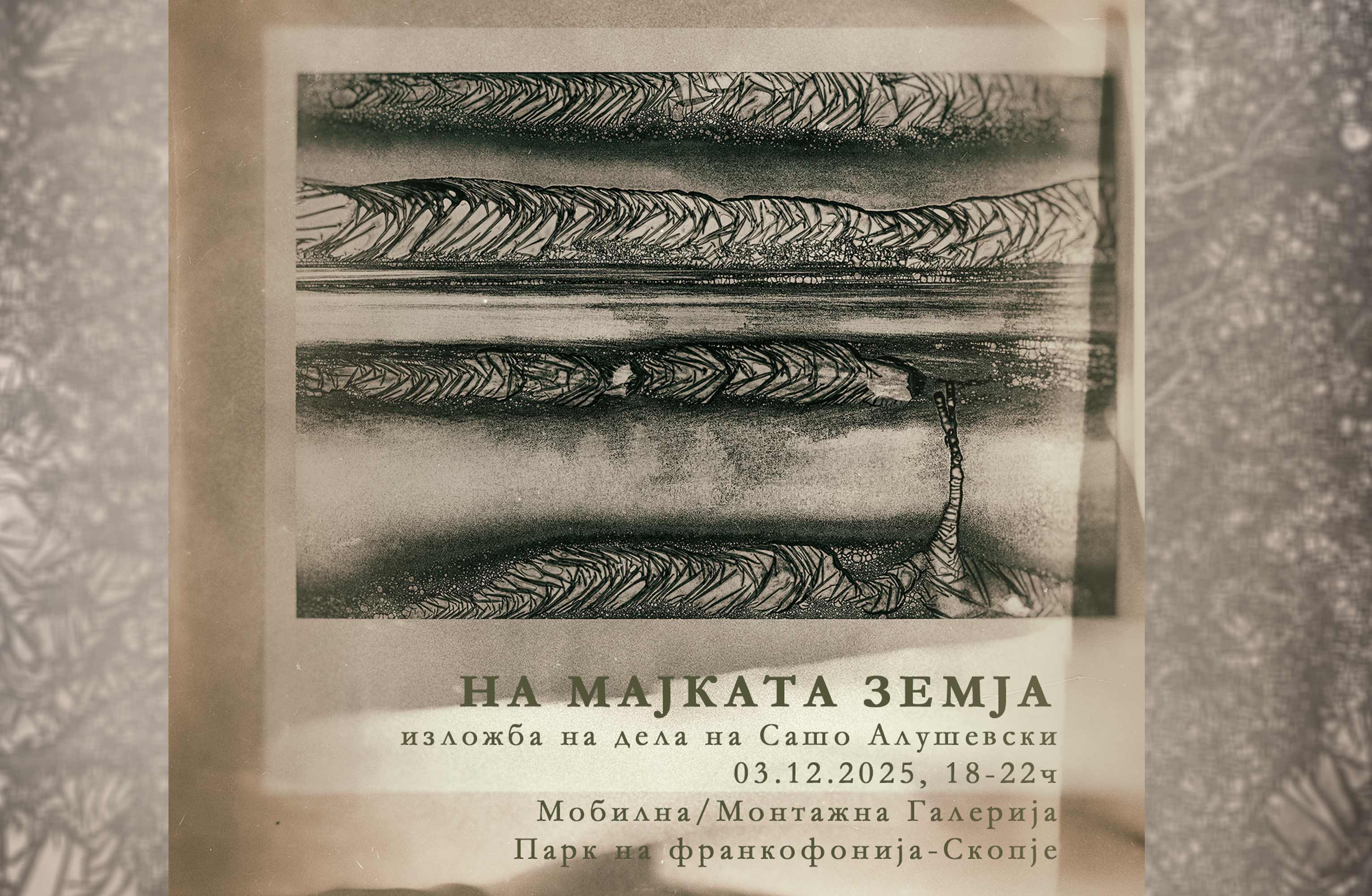 Во среда, трети декември, од 18 часот, авторот Сашо Алушевски ќе постави изложба од циклусот „на Мајката земја“ – шума, во мобилната-монтажна галерија, во Паркот на франкофонијата во Скопје.
