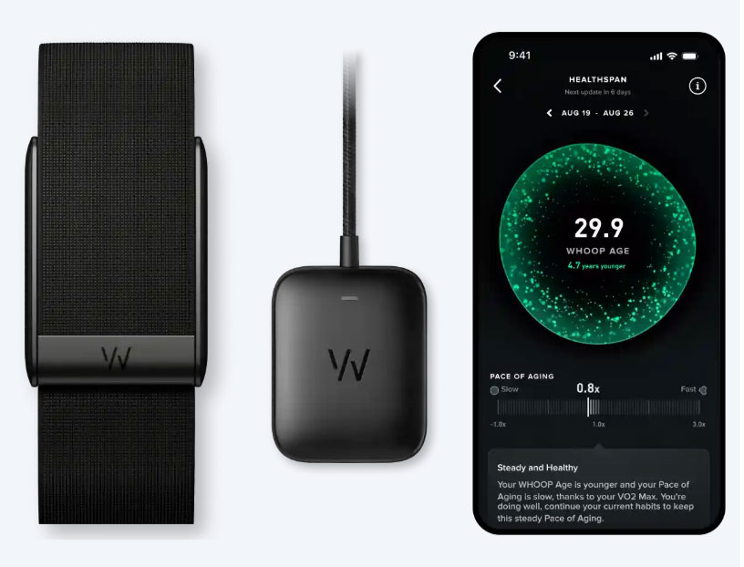 Уредот нема екран ниту дава известувања за да се избегне одвлекување на вниманието на корисникот, но постојано собира податоци, 24/7. Неговото работење се заснова врз напредна технологија. Прво, уредот користи фотоплетизмографија (PPG) – мали зелени LED диоди ги осветлуваат капиларите под кожата за да го мерат протокот на крв и срцевиот ритам со екстремна прецизност. Потоа, преку HRV анализа, уредот ја следи варијабилноста на срцевиот ритам, клучен индикатор за тоа дали телото е способно да се опорави по интензивно вежбање. Исто така, користи предикативни алгоритми – системот ги вкрстува податоците за движење и спиење за да ги пресмета "Strain"  (физичко оптоварување) и "Recovery" (способност за закрепнување).