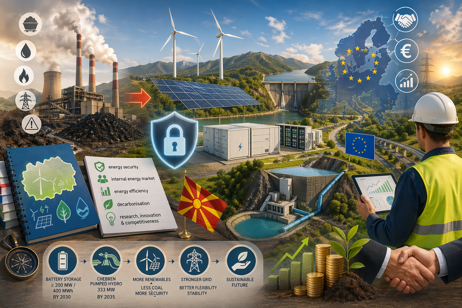 Најнапред да ја согледаме сегашната состојба во која има препреки за енергетската безбедност на Република Македонија и долгорочната одржливост на енергетскиот систем. Тоа се застарената опрема за производство на електрична енергија, особено термоцентралите на јаглен, зависноста од фосилни горива (јаглен, нафта, гас), старите хидроцентрали што треба повремено да се рехабилитираат, застареноста на електроенергетската мрежа, недоволната флексибилност на енергетскиот систем, а тука се и геополитичките ризици.